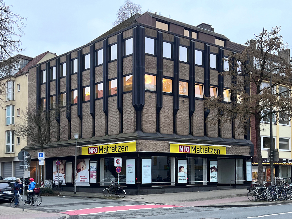 Viele Jahre war das markante Gebäude auf der Hammer Straße Ecke Josefstraße ein Ort für Fashion-Vibes – erbaut von Familie Bellenhaus für ihr gleichnamiges Modehaus. In den 2000ern allerdings verabschiedete sich mit Bellenhaus auch der Glanz vom Standort; in den letzten 20 Jahren hatte eine Matratzenkette dort ihr Domizil.